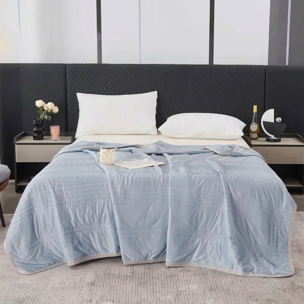 The quilt is designed for easy cleaning. Place the quilt in a large-capacity washing machine alone. Use a cold water setting and a gentle cycle with mild detergent to preserve the cooling fibers. Do not use bleach.